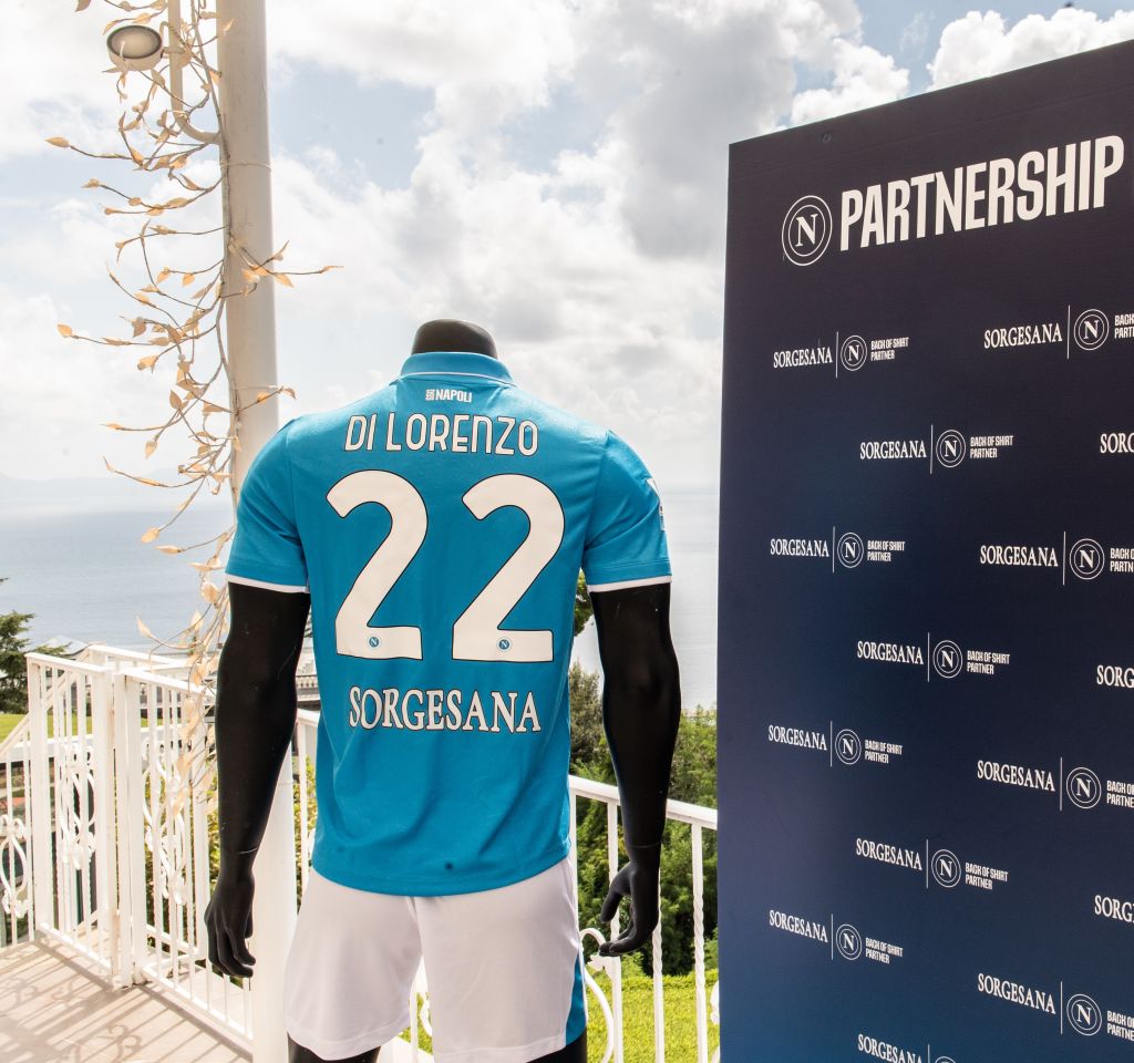 Sorgesana rinnova il titolo di “Acqua Ufficiale della SSC Napoli” e rilancia la propria visibilità nazionale e internazionale posizionandosi sul retro maglia della Prima Squadra e della Primavera del Club nella ventesima stagione di partnership con il Club azzurro, accompagnando Staff e giocatori in ogni momento della loro vita sportiva: dagli allenamenti alle partite fino al loro piano alimentare dedicato, oltre a godere di una importante visibilità online e offline su tutti i media del Club.