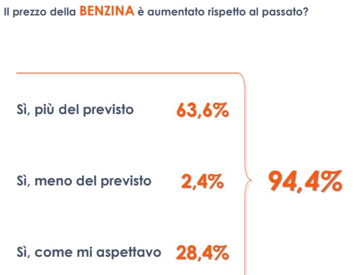 Per quanto riguarda, poi, l’aumento della benzina, la percezione è praticamente totalitaria e coinvolge tutta la popolazione (80,5%). Un aumento che era sì previsto, ma per circa 2 italiani su 3 è andato oltre ogni aspettativa. Una situazione generale che sta mettendo in difficoltà i cittadini italiani e, in riferimento a questi aspetti, si chiede un maggiore sforzo e impegno da parte del Governo in carica. Oltre la metà degli italiani (il 52,3%), infatti oggi, proprio sul tema del contenimento dell’inflazione, del carovita, del caro-bollette e del caro-benzina esprime un giudizio negativo… tuttavia il Governo ha ancora tutto il tempo per sanare questa opinione.