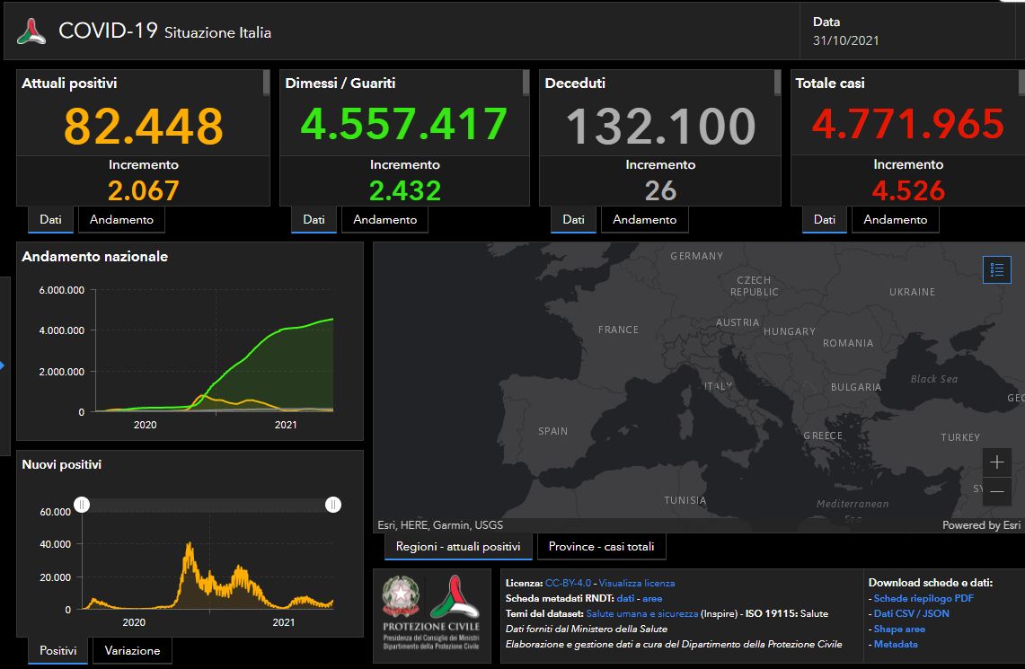 Covid, 4.526 nuovi casi e 26 decessi nelle ultime ore