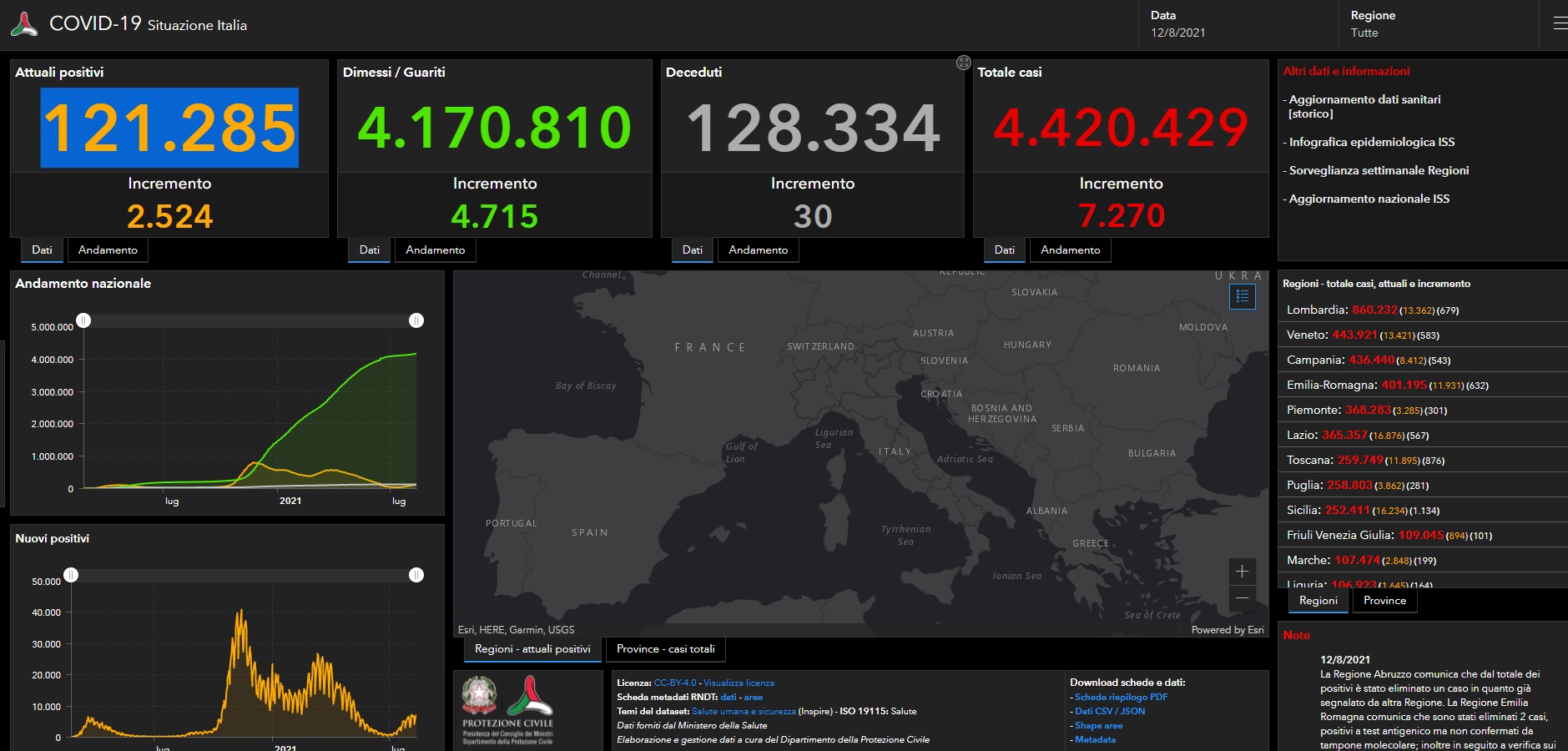 ROMA (ITALPRESS) – Nuova crescita dei casi di coronavirus nel Paese. Secondo i dati forniti dal ministero della Salute i nuovi positivi sono 7.270, in salita rispetto ai 6.968 registrati nelle 24 ore precedenti, ma a fronte di un numero inferiore di tamponi processati, 216.969 e che determina un tasso di positività al 3,35%. Sono invece 30 i decessi. I guariti sono 4.715, per un totale di 4.170.810 da inizio emergenza, mentre gli attualmente positivi crescono di 2.524 raggiungendo il totale di 121.285. Dal fronte ospedaliero si evidenzia una crescita dei ricoveri nei reparti ordinari, dove sono ospitati 2.975 pazienti, in salita di 27. Tornano ad aumentare anche le terapie intensive, con 352 ricoverati, che equivale a un incremento di 15 unità con 40 nuovi ingressi. Le persone in isolamento domiciliare sono 117.958. La Sicilia con 1.134 nuovi casi si conferma essere la regione dove si registra un incremento più sostenuto dei contagi, seguita da Toscana (876) e Lombardia (679). Al contrario le regioni dove si evidenzia una minore crescita sono Valle d’Aosta (1) e Molise (4).