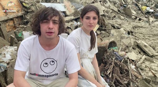Gli adolescenti spalano il fango nelle terre alluvionate