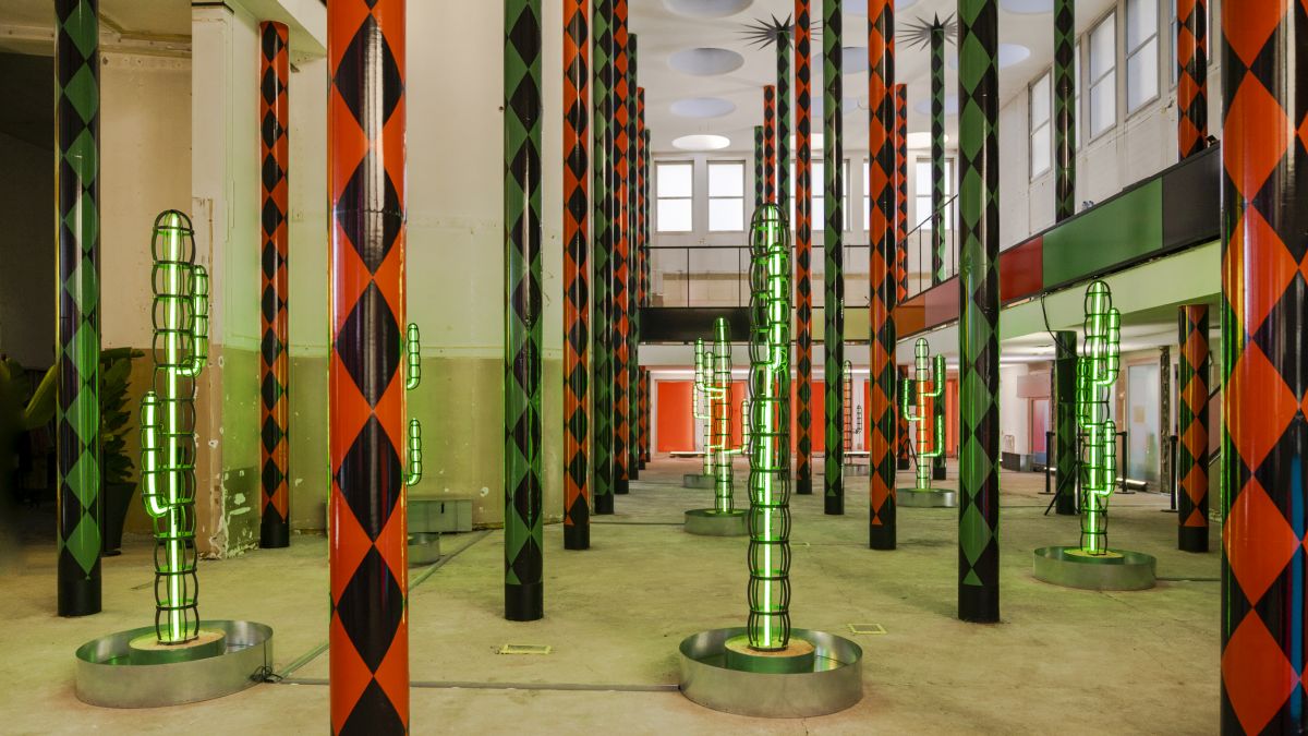 L’intervento di Iacurci prende vita dalla facciata esterna per poi proseguire all’interno del palazzo nell’ampia lounge, uno spazio che avvolgerà i visitatori in uno spettacolo di colori e luci grazie alle numerose installazioni realizzate ad hoc dall’artista.