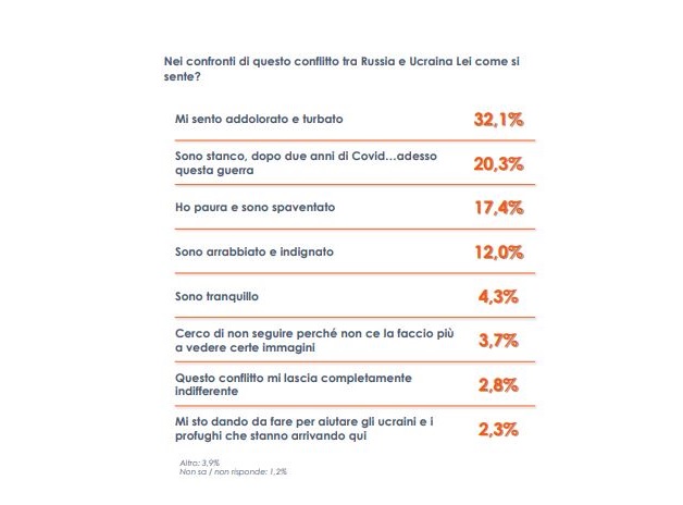 Guerra in Ucraina, dolore e turbamento per un italiano su tre