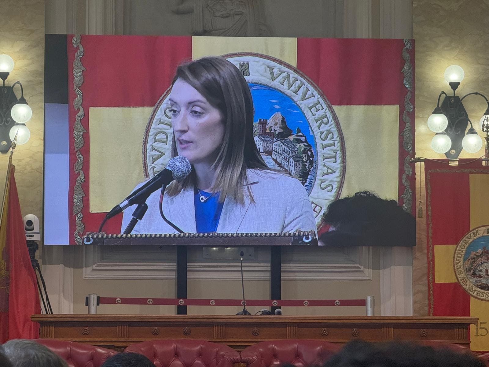 MESSINA (ITALPRESS) – “Per noi del Parlamento europeo, quello che ha vissuto questo Paese ci ha insegnato molto. E su questo noi facciamo delle leggi per tutta l’Europa”. Lo ha detto la presidente della Parlamento Europeo, Roberta Metsola, a margine del convegno “Criminalità nazionale e transnazionale: strumenti e obiettivi in Italia e in Europa”, in corso nell’Aula Magna dell’Università degli Studi di Messina. “È per questo che voglio prendere con me delle storie, delle vite che si sono perse, ma anche della lotta contro il male perché in Europa non c’è posto per accettare la criminalità transazionale e faremo di tutto per abbatterla”, ha aggiunto.