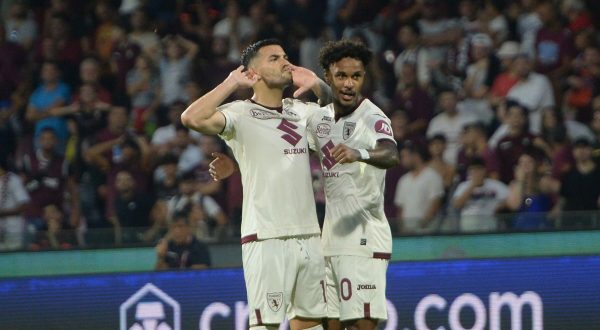 SALERNO (ITALPRESS) – Un gol di Buongiorno e due di Radonjic lanciano il Torino che espugna l’Arechi vincendo con un secco 0-3 la sfida tra squadre granata con la Salernitana. Paulo Sousa lancia Candreva e Cabral con Botheim, in un centrocampo orfano di Coulibaly c’è spazio per Legowski e Bohinen. Juric perde Vlasic, vittima di un attacco di gastroenterite: sulla trequarti gioca Seck con Radonjic, avanti Zapata. Cabral sporca i guantoni di Milinkovic Savic che si fa trovare pronto anche sulla conclusione a giro di Candreva. L’avvio è di marca locale, ma a passare in vantaggio sono gli ospiti, bravi a sfruttare la prima occasione utile: sugli sviluppi di un corner di Lazaro la palla danza in area come in un flipper, il tocco vincente è di Buongiorno che da pochi passi infila alle spalle di Ochoa. La reazione campana è nelle sgroppate di un vivace Mazzocchi, pericoloso anche con un violento rasoterra dalla distanza finito di poco a lato. Prima dell’intervallo arriva però il raddoppio del Toro: l’azione si sviluppa a destra e si conclude a sinistra con Radonjic che controlla al limite dell’area e calcia a giro sul palo lontano dove il portiere non può arrivare. E’ un pomeriggio anche sfortunato quello della Salernitana, in pieno recupero Cabral spacca il palo su suggerimento di Candreva. Paulo Sousa prova a pescare dalla panchina e manda dentro subito, in avvio di ripresa, Ikwuemesi, Martegani e Tchaouna. Neanche i cambi riescono a scuotere i padroni di casa che dopo 5′ incassano il terzo gol: discesa di Bellanova sulla destra e suggerimento al centro per il vincente di prima intenzione di Radonjic. Doppietta per il serbo che flirta con il terzo gol personale ma alla fine non riesce a trovarlo. Prima è il Var a ravvisare un fuorigioco cancellando la tripletta a Radonjic che poi, poco più tardi, si divora a porta vuota il gol dello 0-4. Solo nel finale si rivede un pò la Salernitana, ma Milinkovic Savic blinda il clean sheet opponendosi al colpo di testa ravvicinato del neoentrato Fazio.