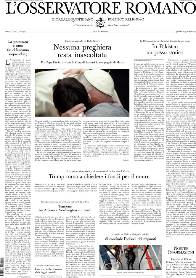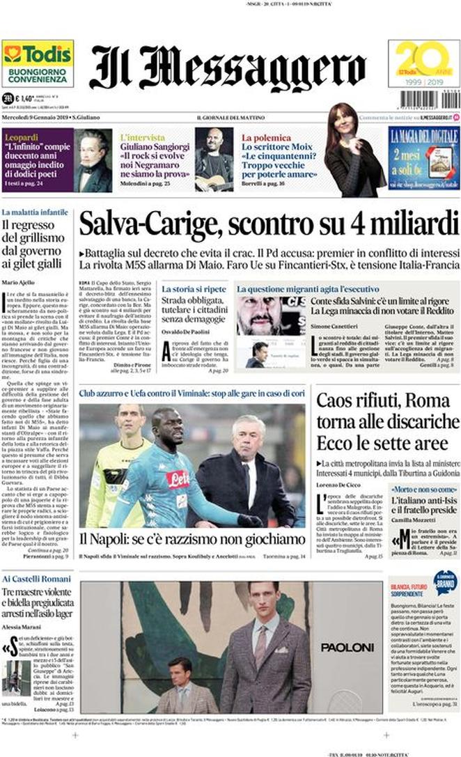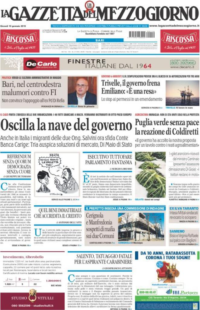 Rassegna stampa del giorno 10/01/2019