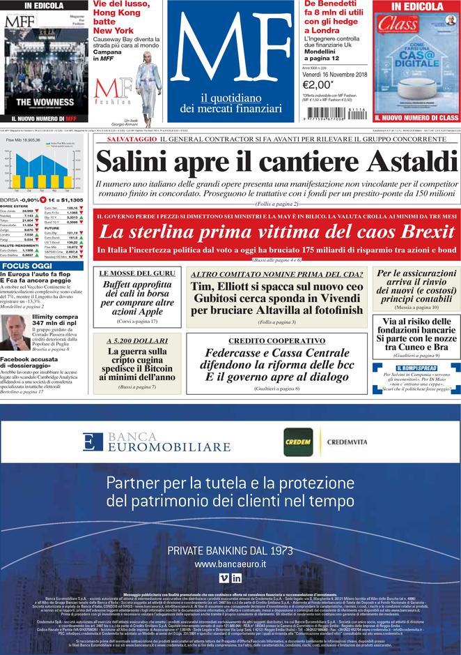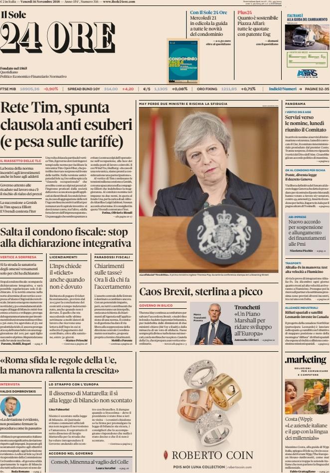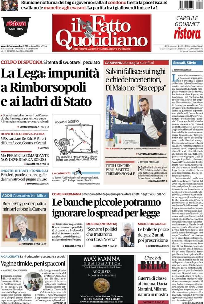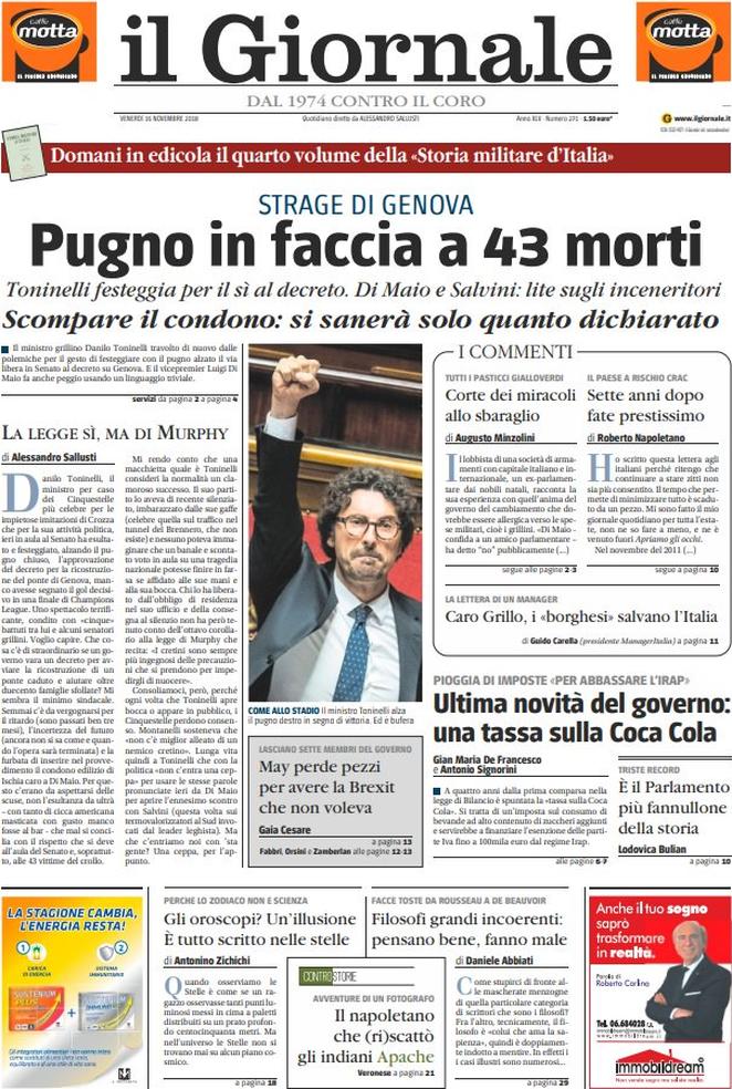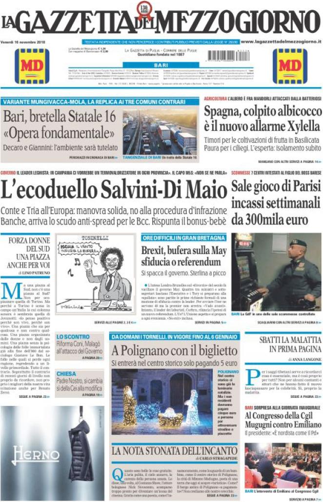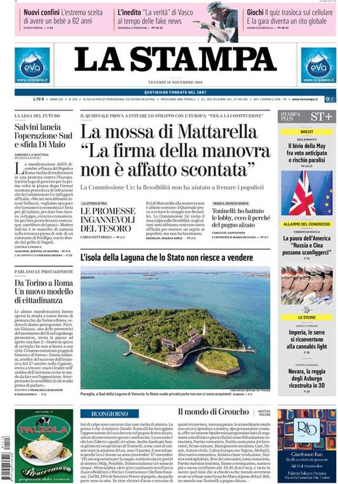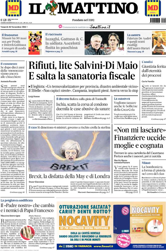 Rassegna stampa del giorno 16/11/2018