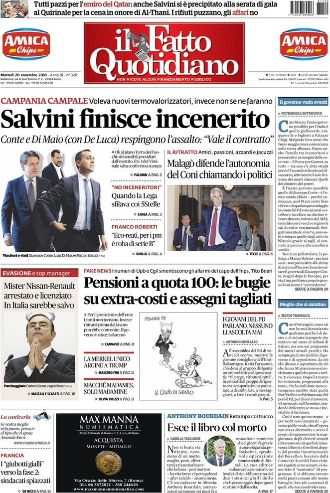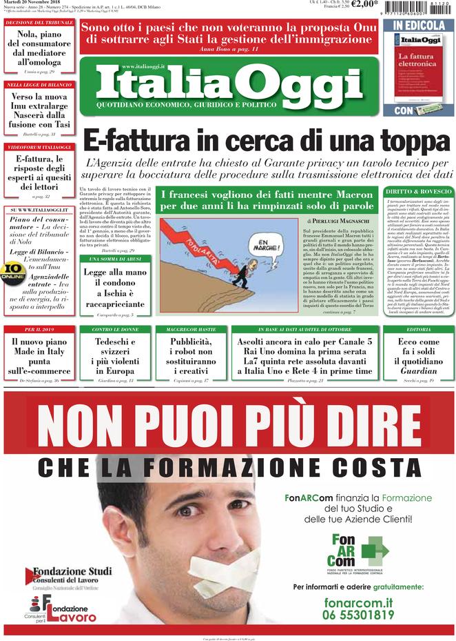 Rassegna stampa del giorno 20/11/2018