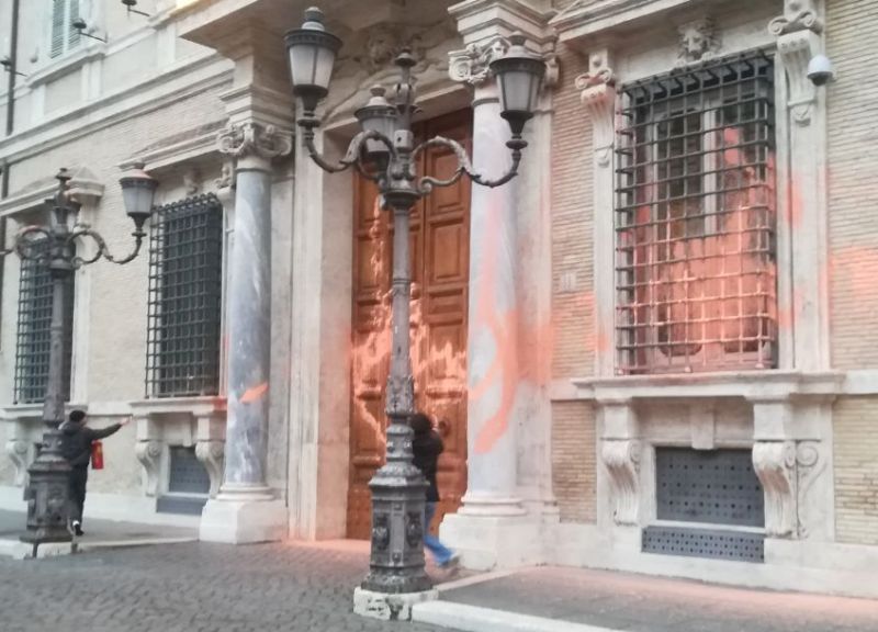 Senato, ambientalisti imbrattano la facciata di Palazzo Madama